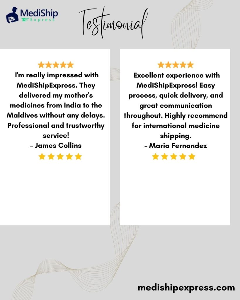 • In addition, MediShip Express offer dedicated customer support to assist with any questions or concerns you have throughout the shipping process. As a result, choosing MediShip Express can result in efficient handling of your medicine shipment, thereby reducing the risk of delays or complications.